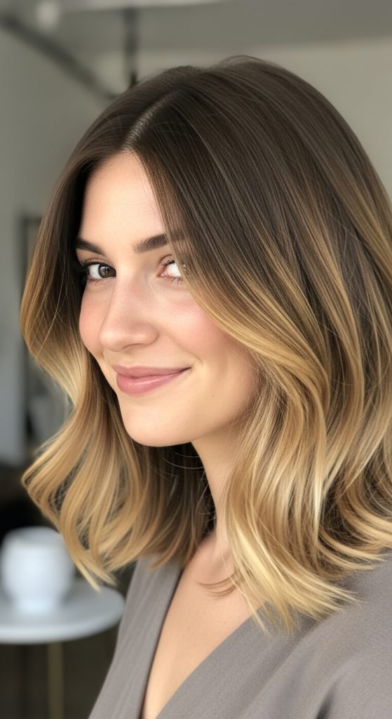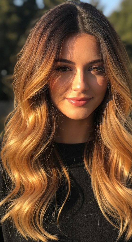 Golden brown ombre is a bright, radiant look that blends brown roots into warm golden tips. It works beautifully for those with lighter skin tones or anyone seeking a sun-kissed appearance without going blonde.