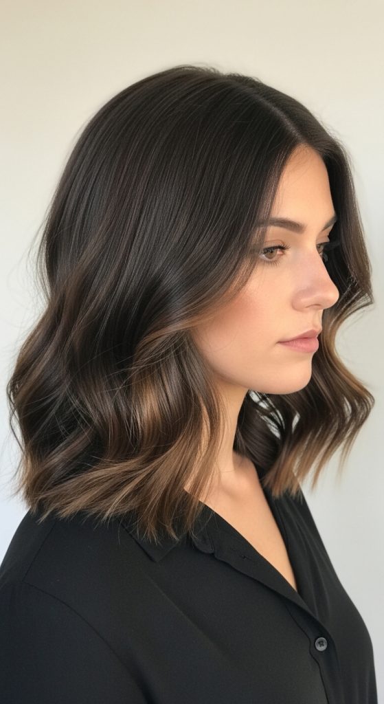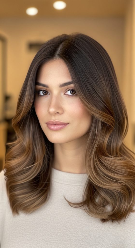 Mocha brown ombre blends chocolate and mocha shades to create a rich, multidimensional effect. This style works well on medium brown hair and adds depth and movement to the hair.
