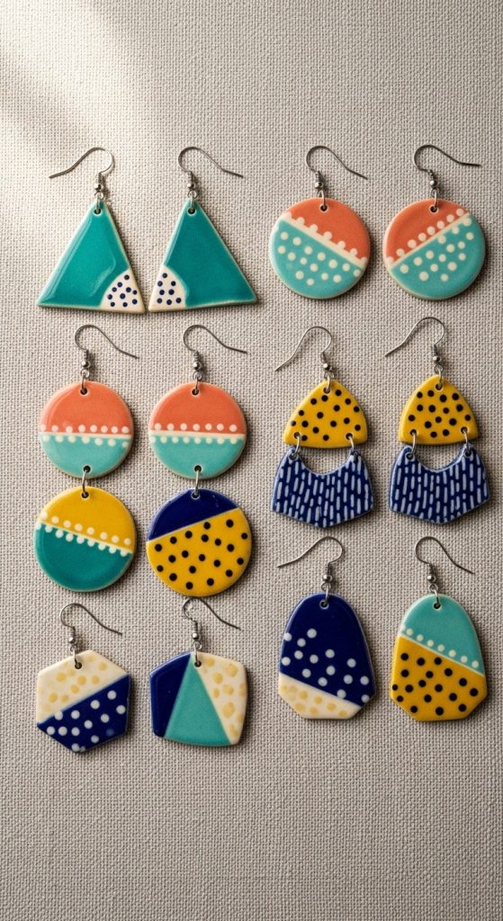 Ceramic jewelry offers a lightweight and creative alternative to traditional materials. Begin by rolling out thin slabs of clay and cutting them into small shapes such as circles, triangles, or abstract forms. Use cutters or carve by hand.
