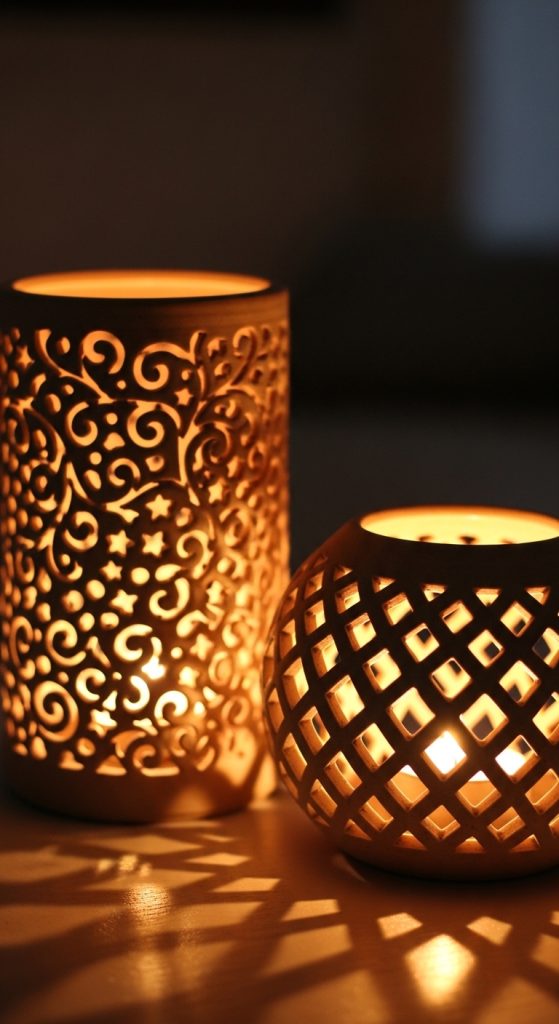 Ensure the top has a secure space to hold a candle. You can also create cut-out patterns to allow light to pass through, creating beautiful shadows.
