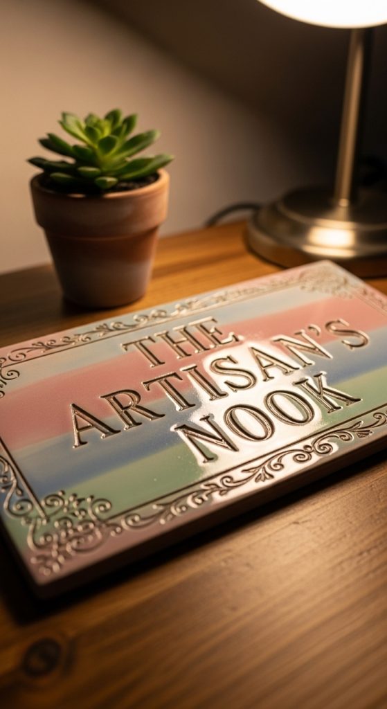 Personalized ceramic name plates are both decorative and meaningful. Start by rolling out a flat slab of clay and cutting it into a rectangular or custom shape. Smooth the surface carefully to prepare it for lettering.