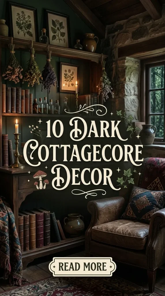 Dark cottagecore decor is a style that blends the comfort of rural living with a deeper, moodier atmosphere. It takes inspiration from old countryside homes, forest cabins, and vintage farmhouses, but adds richer colors, shadowy corners, and antique details. While traditional cottagecore often uses light pastels and bright florals, dark cottagecore leans into earthy browns, forest greens, deep burgundy, charcoal, and muted gold. The goal is to create a cozy space that feels warm, nostalgic, and slightly mysterious.