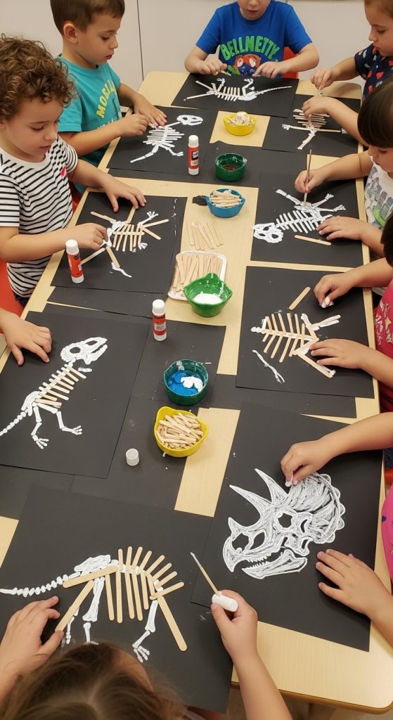 Creating dinosaur skeletons using popsicle sticks is a great way to introduce basic ideas about bones and prehistoric fossils.