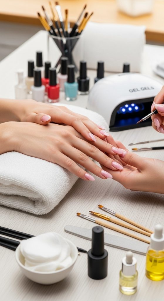 Applying nail polish correctly ensures a smooth, professional finish. Start by applying two thin coats of your chosen color, allowing each layer to dry fully before applying the next. Thin layers prevent streaks, bubbles, and uneven texture. For gel nails, cure each layer under a UV or LED lamp as instructed.