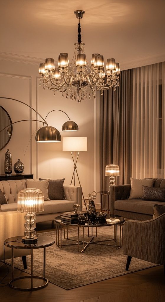 Lighting plays a crucial role in transforming a living room into an elegant space. Statement lighting fixtures, such as chandeliers, pendant lights, or sculptural floor lamps, serve both functional and decorative purposes. They create visual interest, highlight key areas, and set the mood for the room. Layering lighting with ambient, task, and accent sources ensures flexibility and balance.