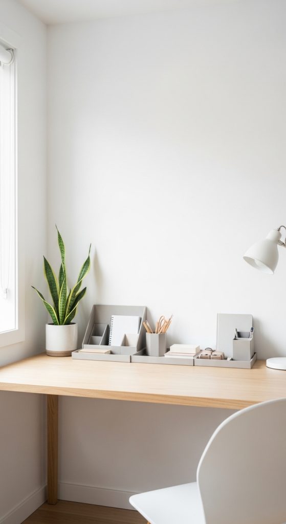 A wall organizer study design focuses on maximizing vertical storage while keeping the desk surface clear. It is a practical DIY solution for maintaining order in small learning rooms. This idea is popular in modern home decor because it improves efficiency and reduces clutter.