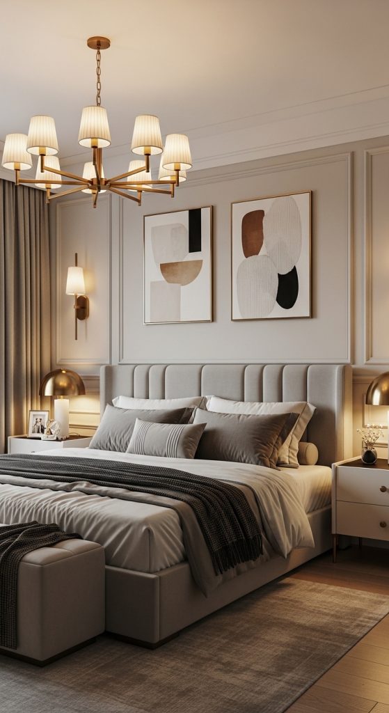 When planning lighting, measure ceiling heights and wall space to select fixtures that complement the room’s proportions. Consider dimmable lights to adjust brightness according to different activities, such as reading or relaxing. Materials like brass, chrome, or matte black finishes enhance modern luxury aesthetics. LED strip lighting behind headboards or under cabinets adds subtle elegance and a contemporary feel. Preparing for lighting installation involves checking electrical points, wiring, and switches in advance to avoid last-minute adjustments. Properly layered lighting transforms a bedroom from ordinary to luxurious, adding warmth and sophistication throughout the space.