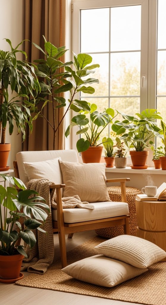 Plants bring life and freshness into your reading nook. Choose easy-to-care-for indoor plants such as snake plants, pothos, or peace lilies. These plants improve air quality and add natural beauty.