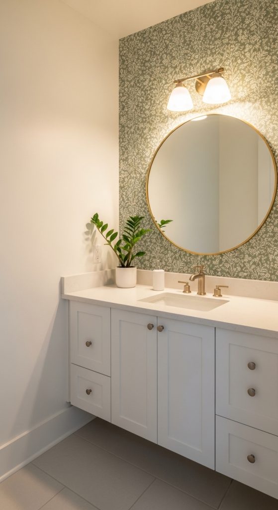 Choose moisture-resistant wallpaper designed for bathrooms. This decor idea adds personality and style, especially in powder rooms or guest bathrooms.