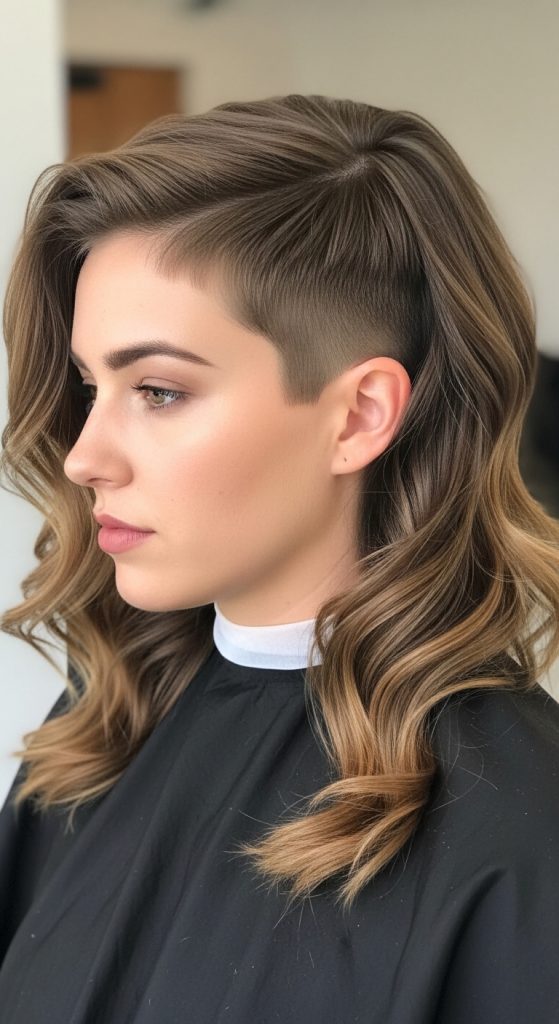 The classic wavy mullet combines short, layered sides with a longer, wavy back, offering a timeless silhouette that suits most face shapes. The waves add volume and movement, enhancing the retro-modern balance of the cut. This design emphasizes contrast between the cropped front and elongated rear while softening the overall look through texture. The wavy effect ensures a natural flow, making the style appear effortless yet stylish. This idea is beginner-friendly because it relies on simple layering and perm techniques, creating a professional appearance without intricate tools or advanced skills. Its aesthetic versatility makes it appropriate for both casual and formal settings, and it provides a solid foundation for experimenting with additional styling, such as braids or color accents.